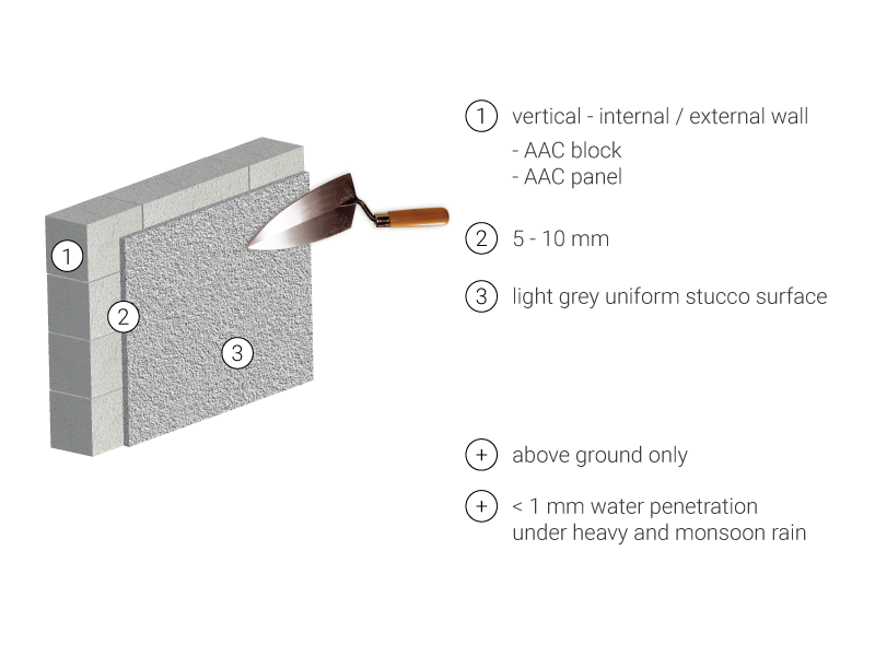 100% waterproof breathable drying grey plastering mortar for AAC wall resistant to water penetration under heavy and monsoon rain.